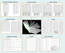 peer outreach workers in the pilot phase of the databook reported that it was easy to document client contacts with a minimum of pen strokes, and they could use nicknames or a full UIC. At the end of every day and every week, the outreach workers could easily total the commodities they distributed and activities conducted in the summary pages. For ease of supervision, the book provides at a glance an accurate measure of individuals contacted each month plus a good impression of intensity and nature of client contacts.