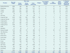 The NTP has expanded childhood TB services in recent years; in 2013, 13 of the 24 provinces routinely provide childhood TB services including case-finding, case management, contact tracing and provision of isoniazid preventive therapy. In 2013, the total number of TB notifications in children was 6916 (17.7% of all notified TB cases), of which 87.0% and 12.1% were extrapulmonary and smear-negative, respectively. The proportion of TB in children among total notifications ranged from 1.3% to 39.4% across provinces (Table 2). Pailin City had the highest proportion (39.4%) followed by Banteay Meanchey (36.3%) and Battambang (33.5%).