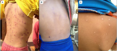 The majority of the cases presented with vesicular rash (n = 189, 99.5%) at either the blistering, scabbing or scarring phase, which is characteristic of varicella (Figure 2), and met the US CDC standard case definition for varicella.3 A single case manifested with a maculopapular rash (0.5%) without cough, coryza or conjunctivitis and met the WHO standard case definition for rubella.7 No cases met the WHO standard case definition for measles.7 The severity of the illness of the cases was uniformly mild with no complications, hospitalization or death.