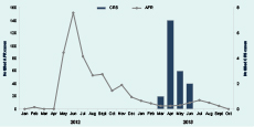 Despite the small number of laboratory-confirmed CRS cases, the timing of the CRS outbreak is consistent with the previous rubella outbreak in 2012 (Figure 1). Suspected newborn CRS cases that test anti-rubella IgM negative should be re-tested one month later, as approximately 20% of infected infants may not have detectable titres before one month of age;7 this diagnostic follow-up was not possible as the cases had returned to their villages. Given that substantial rubella transmission appears to have started in May 2012 and prospective CRS surveillance was only implemented from April 2013, it is probable that additional cases went undetected. Additional undetected cases in the other provinces where CRS surveillance was not conducted is also possible.